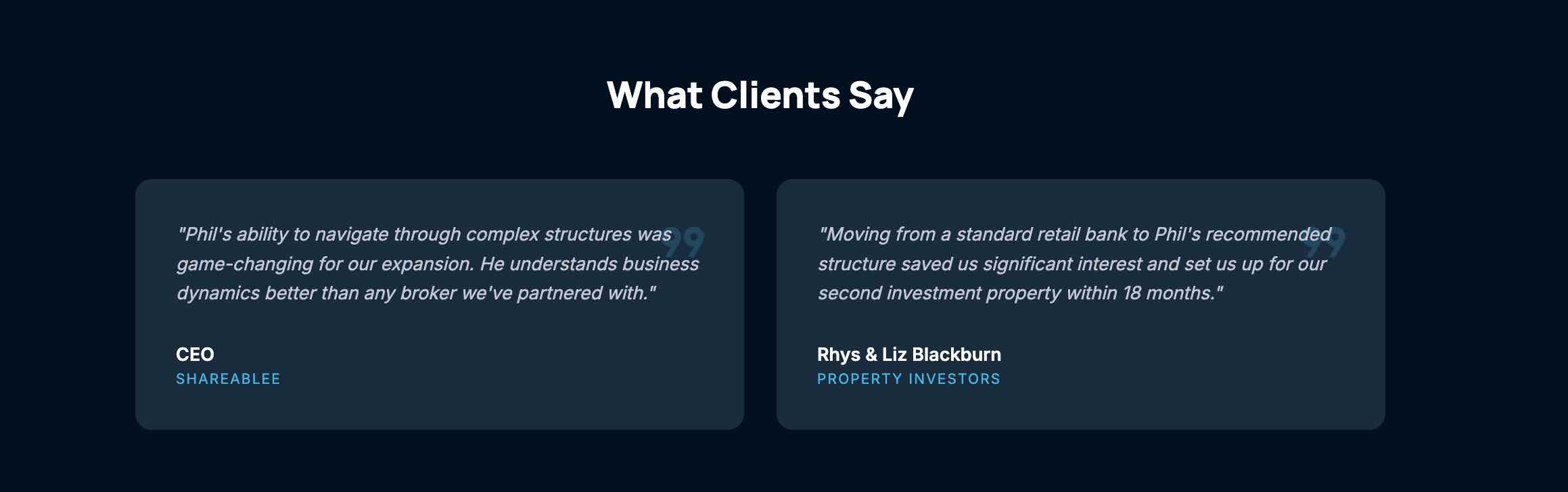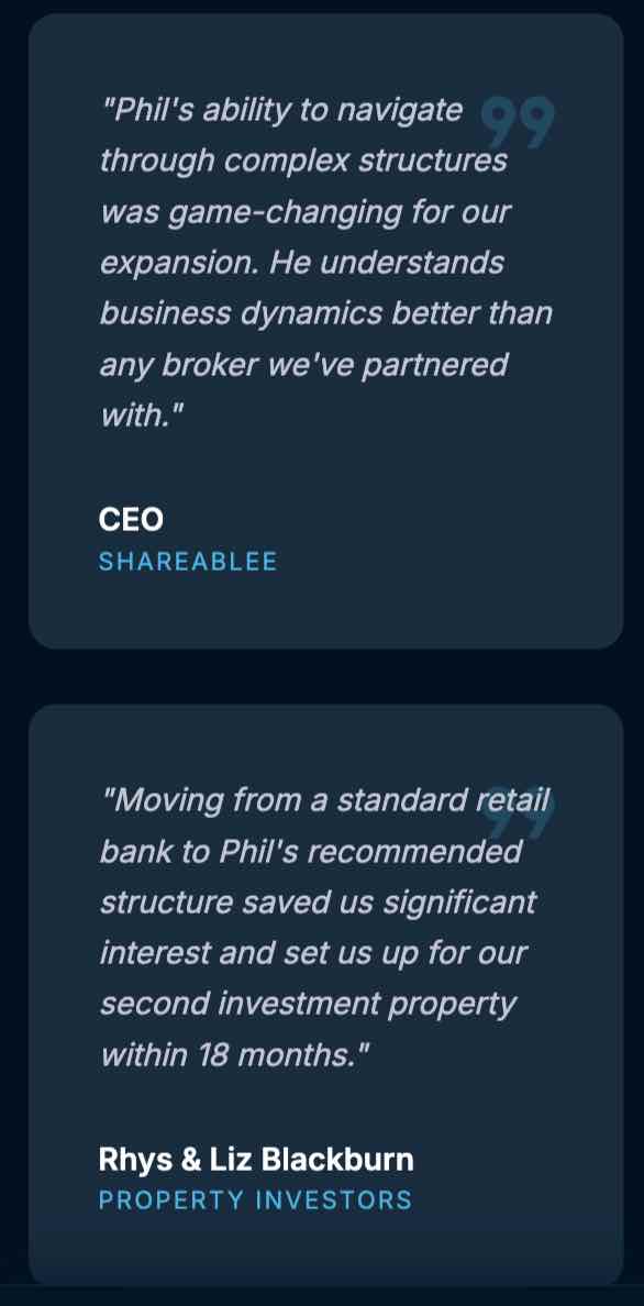 By focusing on loan structures first, Phil ensures that his clients' financial architecture is resilient. The right structure can save more in taxes and interest over 10 years than a marginally lower rate ever could.